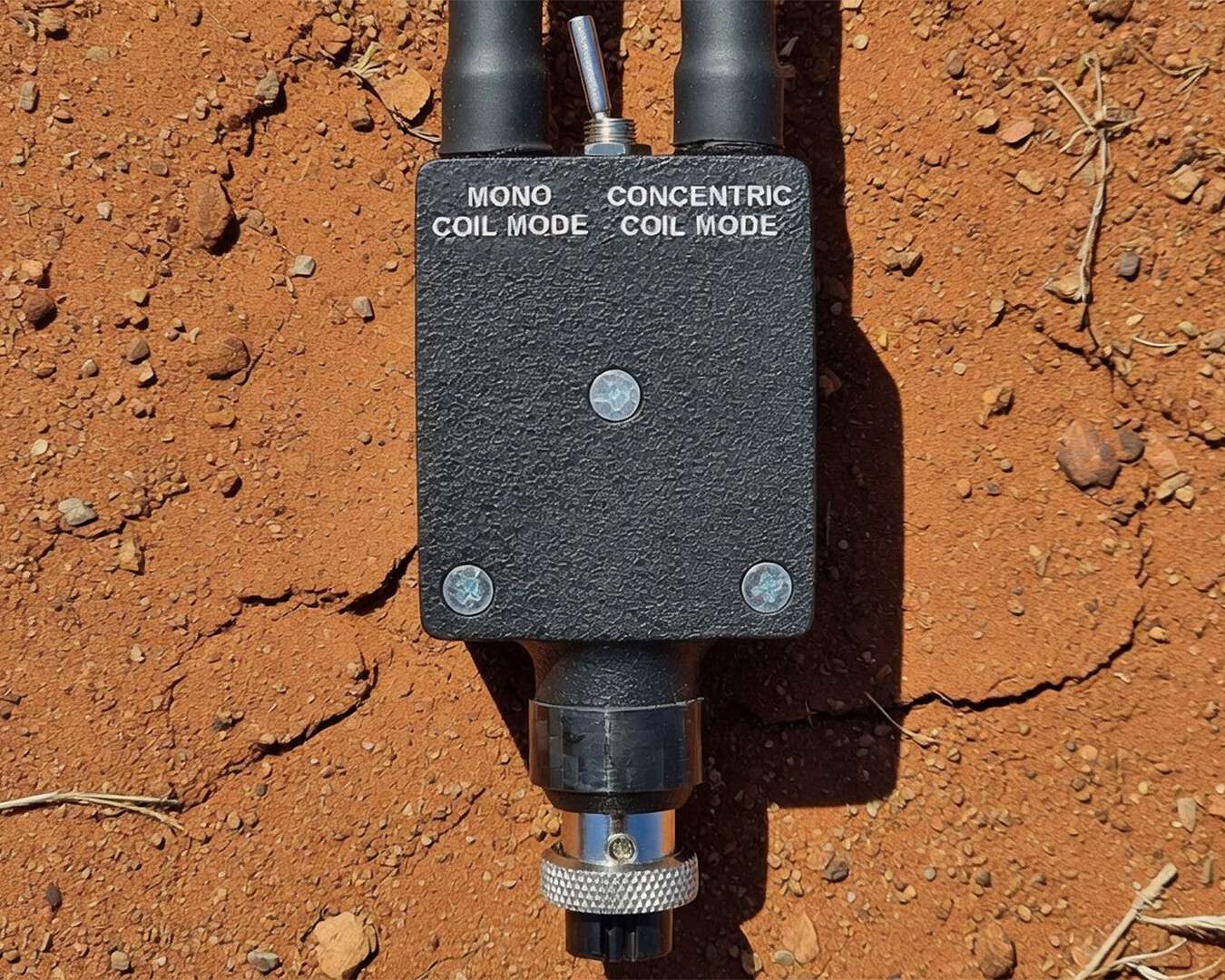 The 22 inch Concentric aftermarket search coil for Minelab pulse induction gold metal detectors. With dual cable system designed by Nexus with a switchbox which instantly switches from Mono (deep) to Concentric (discrimination) mode. Providing a two-in-one search coil for gold prospecting and treasure hunting.